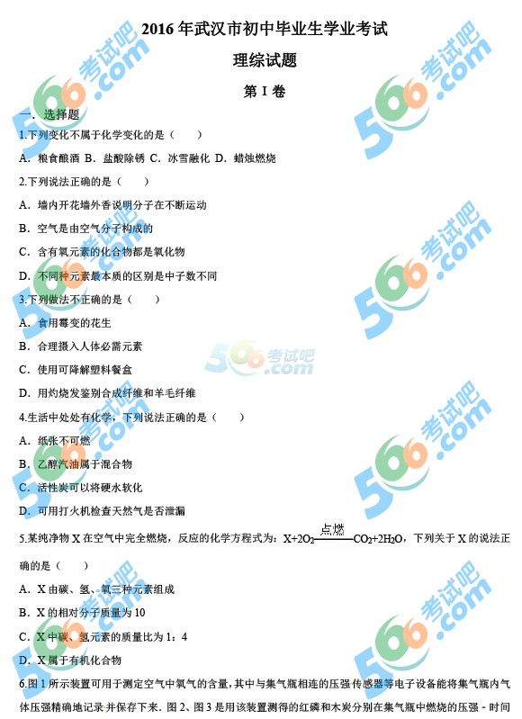 精英中考网m.zhongkaowu.com消息:2017年武汉市中考已经结束,又有一批新的初三考生即将参加2018武汉中考,为了帮助广大师生更好的备考,小编收集整理了历年武汉中考试题及参考答案,供广大考生参考,下面是2016武汉中考化学物理试卷及参考答案