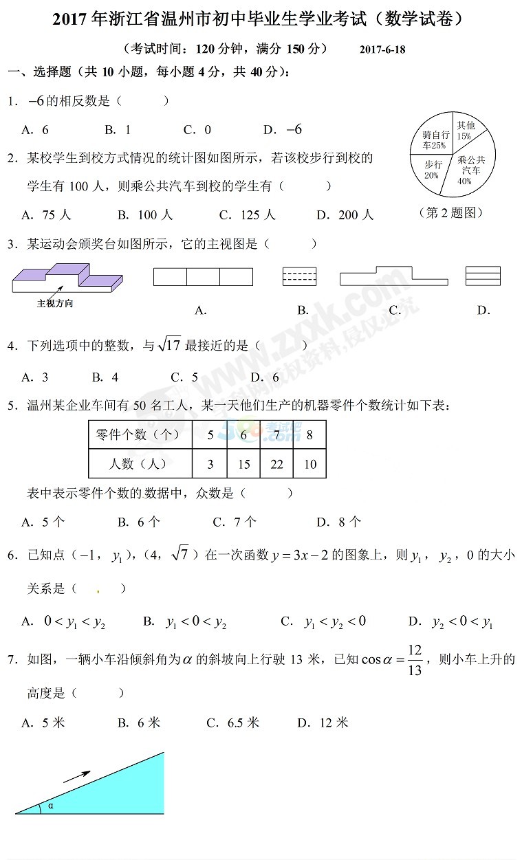 精英中考网消息:2017年浙江省温州市中考已经结束,六月,又有一批新的考生参加2018中考,为了帮助广大考生更好的复习备考,小编收集整理了2017温州中考各科试题及参考答案,供广大考生参考,下面是2017温州中考数学试题试卷及参考答案