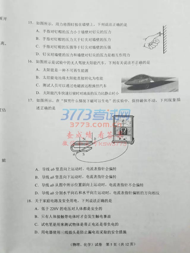精英中考网m.zhongkaowu.com消息:2017年武汉市中考已经结束,又有一批新的初三考生即将参加2018武汉中考,为了帮助广大师生更好的备考,小编收集整理了历年武汉中考试题及参考答案,供广大考生参考,下面是2017武汉中考物理化学试卷试题及参考答案