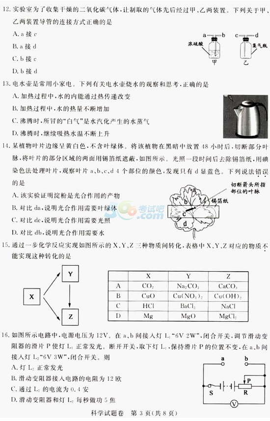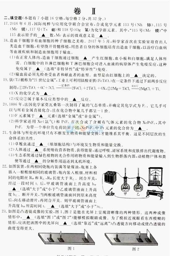 精英中考网消息:2017年浙江省湖州市中考已经结束,六月,又有一批新的考生参加2018中考,为了帮助广大考生更好的复习备考,小编收集整理了2017湖州中考各科试题及参考答案,供广大考生参考,下面是2017湖州中考科学试题试卷及答案
