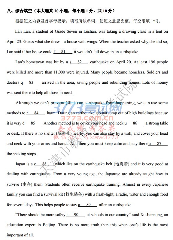 精英中考网消息:2017年山东省天津市中考已经结束,六月,又有一批新的考生参加2018中考,为了帮助广大考生更好的复习备考,小编收集整理了2017天津中考各科试题及参考答案,供广大考生参考,下面是2017天津中考英语试题试卷及答案