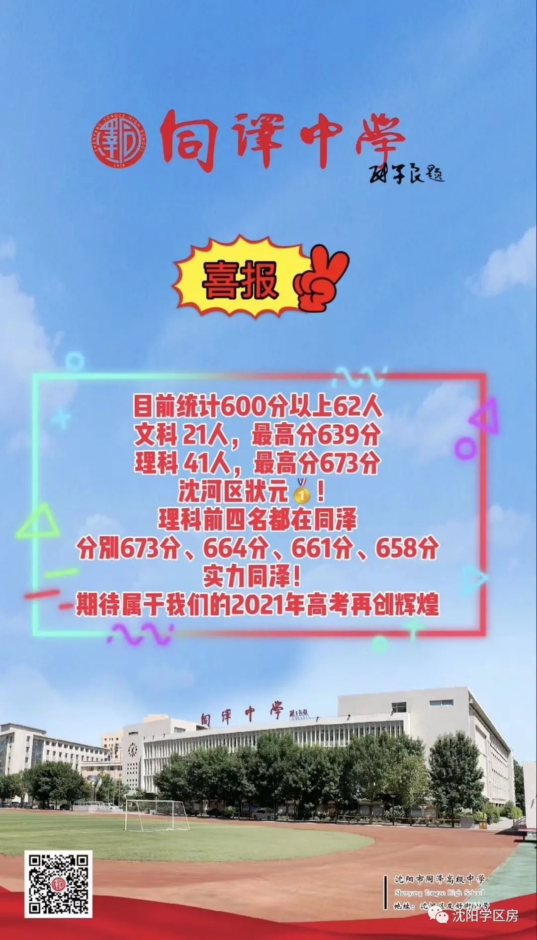 沈阳市同泽中学2020高考喜报
