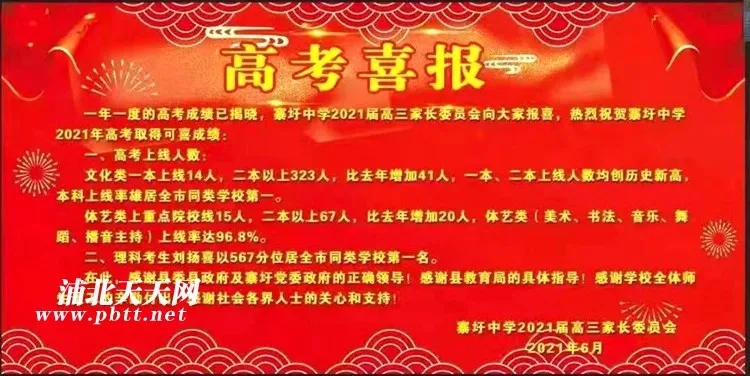 2021浦北寨圩中学高考喜报成绩、本科一本上线人数情况