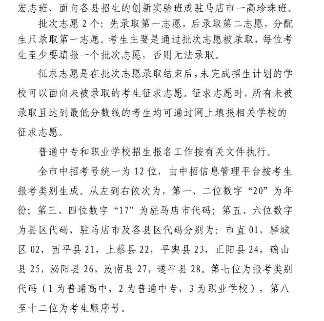 2020驻马店中考政策方案
